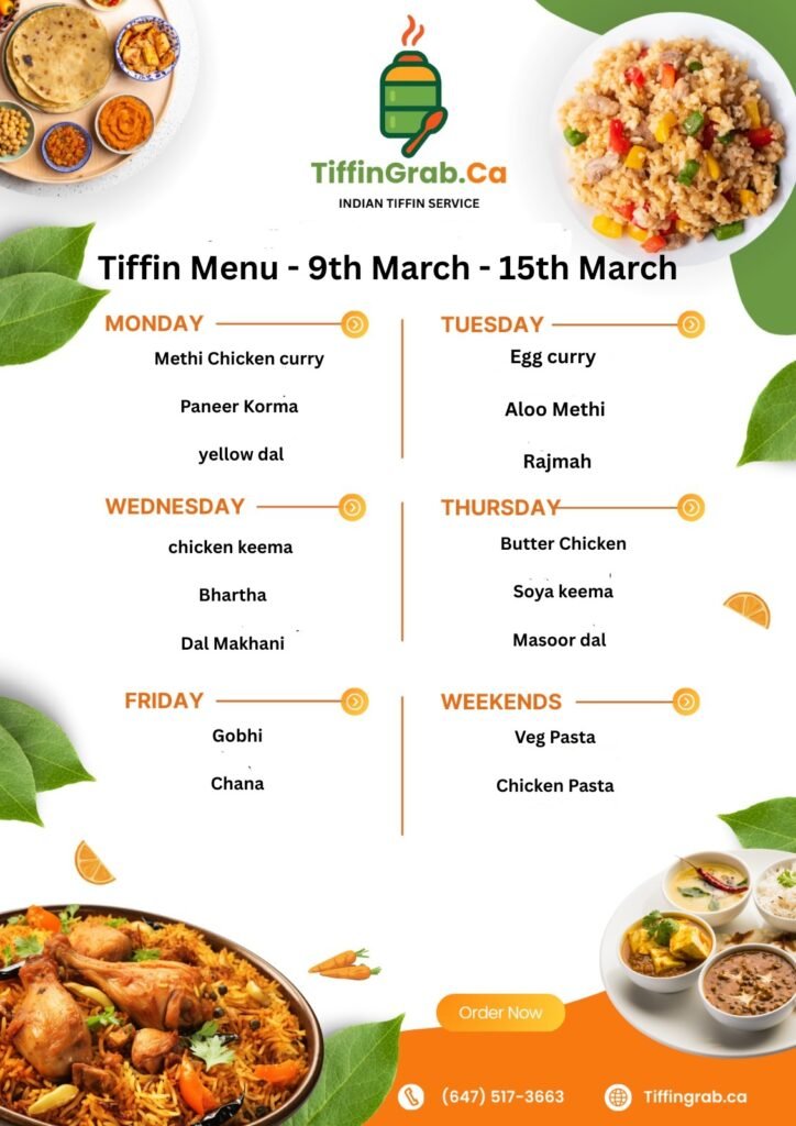 Our weekly menu is crafted to offer variety and freshness—no repeated items, just a new selection of delicious Indian dishes every day. Enjoy balanced meals with different flavors throughout the week.